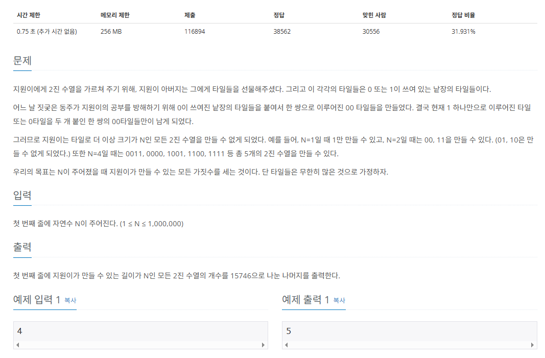 그래서 문제에서는 %15746을 하여 값을 return 하게 하고 있는데 이것을 잘 이해하지 못해서 계속 틀린답이 나온것이였다.