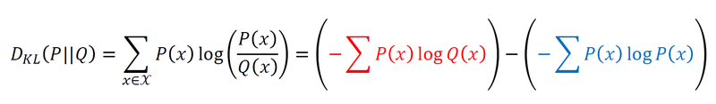 - D(P || Q) = Σ \[P(x) \* log(P(x) / Q(x))\] (이산 확률 변수의 경우)