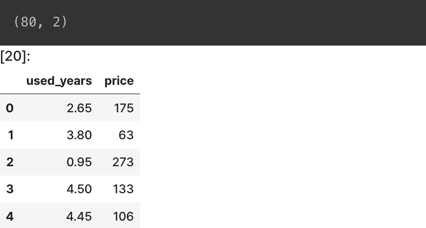- 맥북을 사용한 사용연수와 중고가격을 나태내는데이터