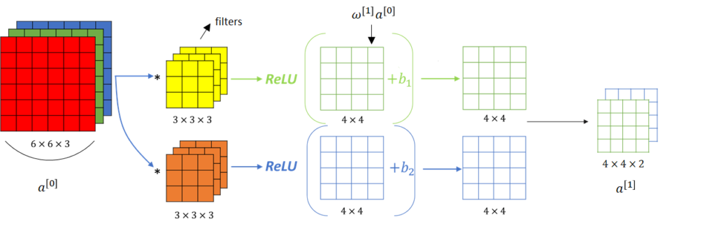 - 각각 채널의 image에 kernel을 over-riding한 후 convolution연산을 해준다.