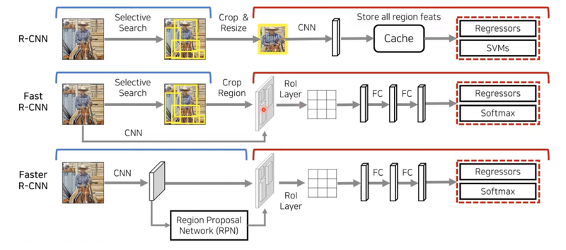 - RCNN, Fast RCNN과 Faster RCNN의 가장 큰 차이점