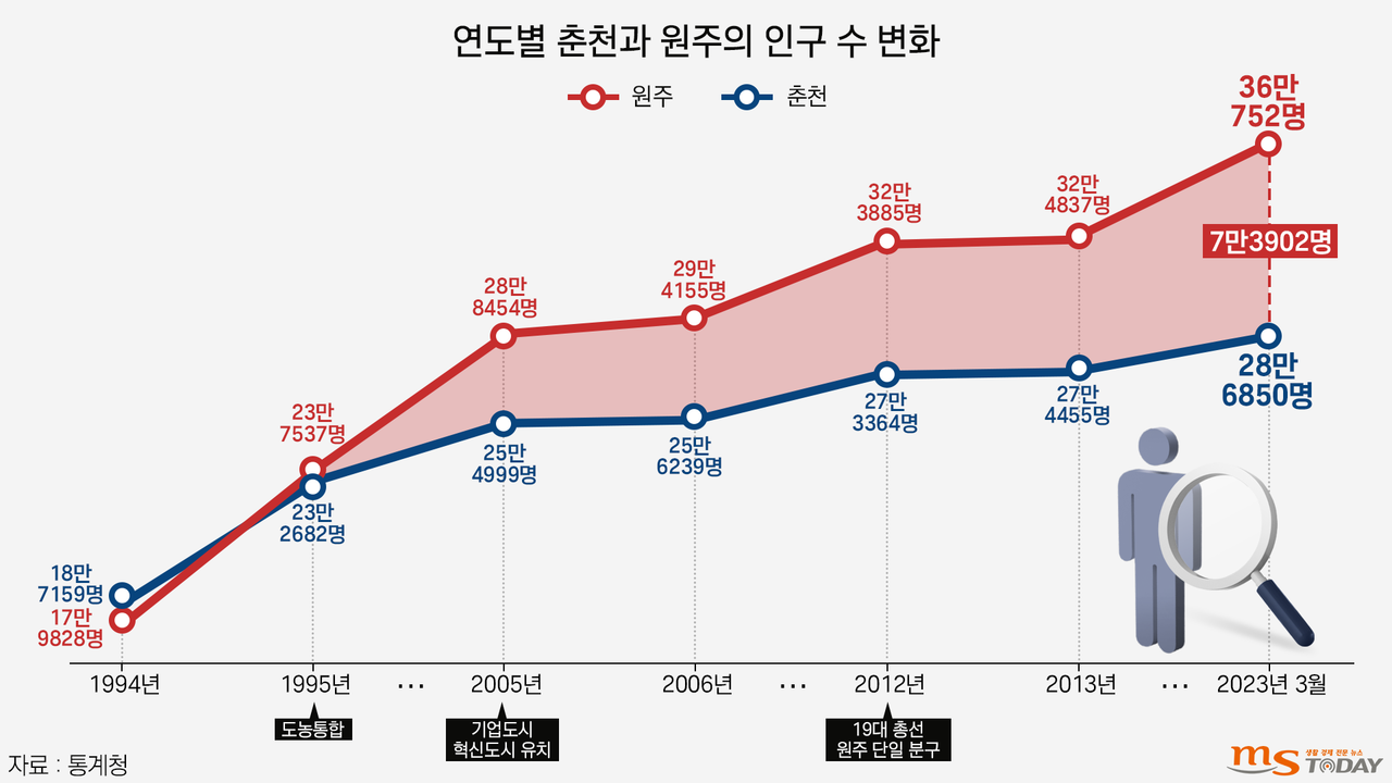 - 시와 시의회, 지역 소재 5개 대학 관계자로 구성된 '원주시 국회의원 2명 선출을 위한 추진위원회'까지 구성했다. 결과적으로 기업도시와 혁신도시 성공 등의 성과를 내며 원주시 발전을 배가시키는 효과를 거뒀다.