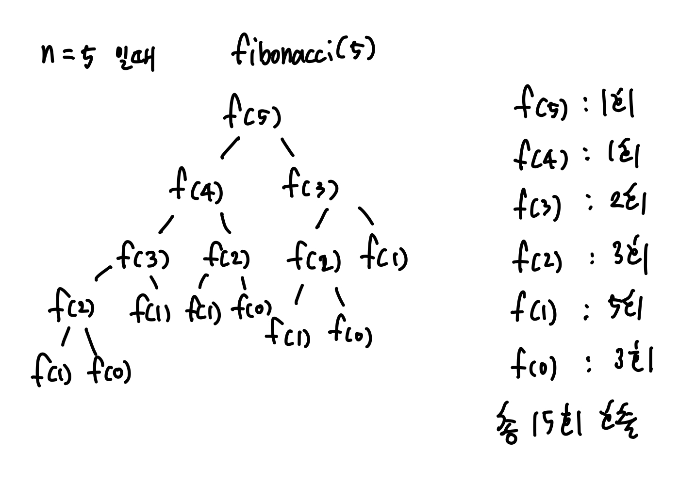 이렇게 똑같은 값을 계속 불러오게 되어 fibonacci(1)은 무려 5회나 호출되게 된다.