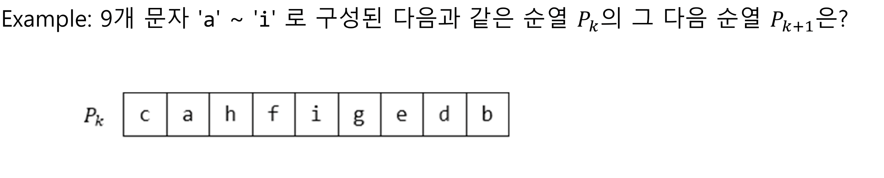 나리야나 판디타는 14세기 인도 수학자로 모든 순열이 사전식 오름차순으로 정렬되어 있을 때 주어진 순열의 다음 순열을 찾아 주는 알고리즘을 만들었다.