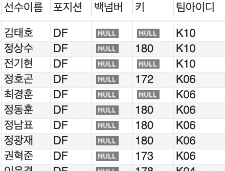➞ (POSITION <> 'DF' AND POSITION <> 'FW') 여기서 OR이 아님을 주의 !!