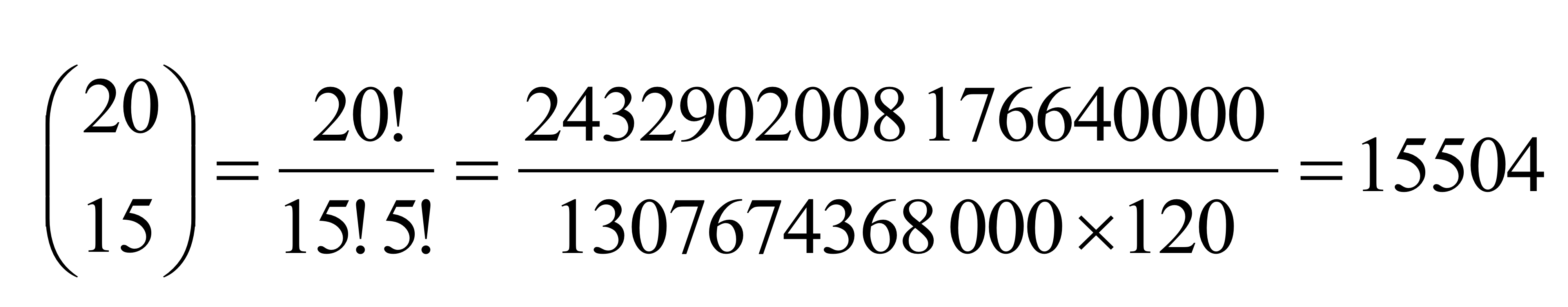 예를 들어 20개의 항목중에서 15개의 항목을 선택하는 방법의 수는 다음과 같다.