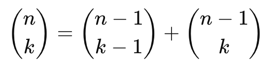 이 재귀식은 조합을 두 가지 경우로 나누어 계산함으로써, 전체 조합의 수 C(n,k)를 효율적으로 구할 수 있게 해준다.