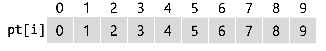 - pt[0] = 0, pt[1] = 1, …, pt[9] = 9