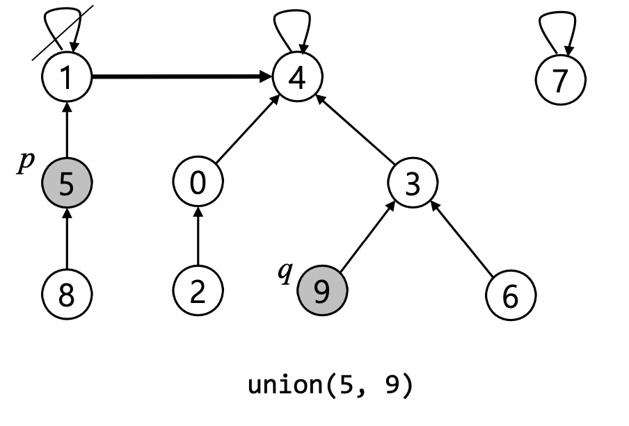 pt[rootP] = rootQ # p의 루트를 q의 루트에 연결