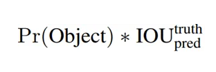 confidence score는 박스 안에 객체가 포함될 확률과, 박스가 객체를 얼마나 잘 담고 있는지에 대한 곲으로 아래와 같이 계산한다.