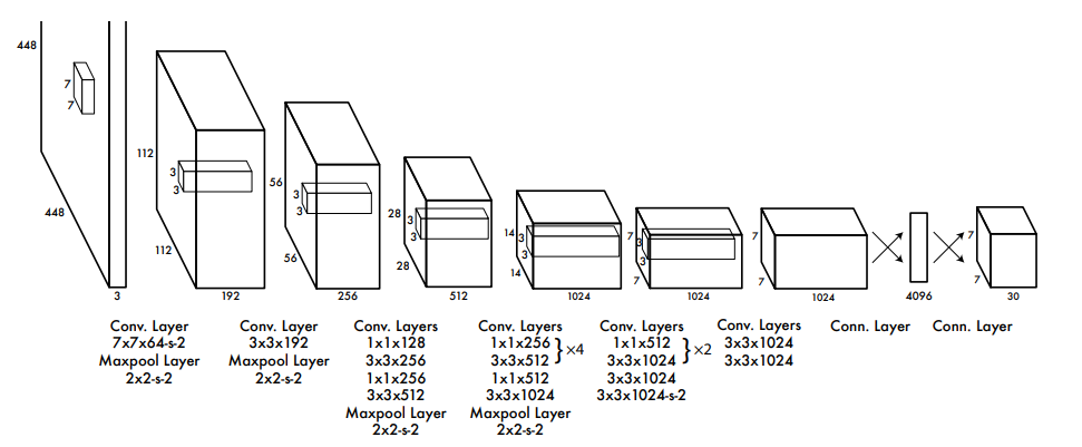 - 24개의 convolutional layer와 2개의 fully connected layer로 구성되고, 첫 번째 convolutional layer는 이미지에서 feature를 추출한다.