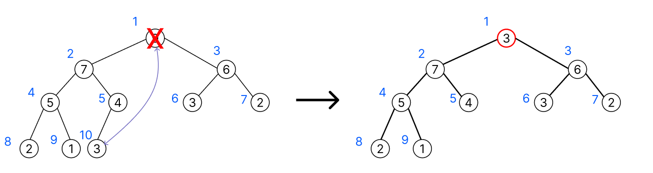 최대 힙(max heap)에서 최댓값을 삭제해보자.